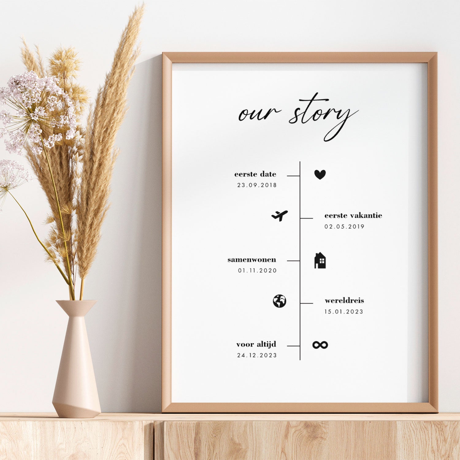 Bij Personal Prints ontwerp ik gepersonaliseerde posters die jouw mooiste momenten omzetten in een blijvende herinnering. Een poster op maat is meer dan decoratie, het is een persoonlijk verhaal dat je met trots aan de muur hangt. Of je nu op zoek bent naar een cadeau voor een verjaardag, huwelijk, geboorte of jubileum, hier vind je iets unieks dat echt iets betekent. Steeds meer mensen kiezen voor een persoonlijk cadeau dat speciaal is ontworpen voor degene die het ontvangt. Elk ontwerp is met zorg opgebouwd om gevoelens, herinneringen en momenten tastbaar te maken.