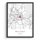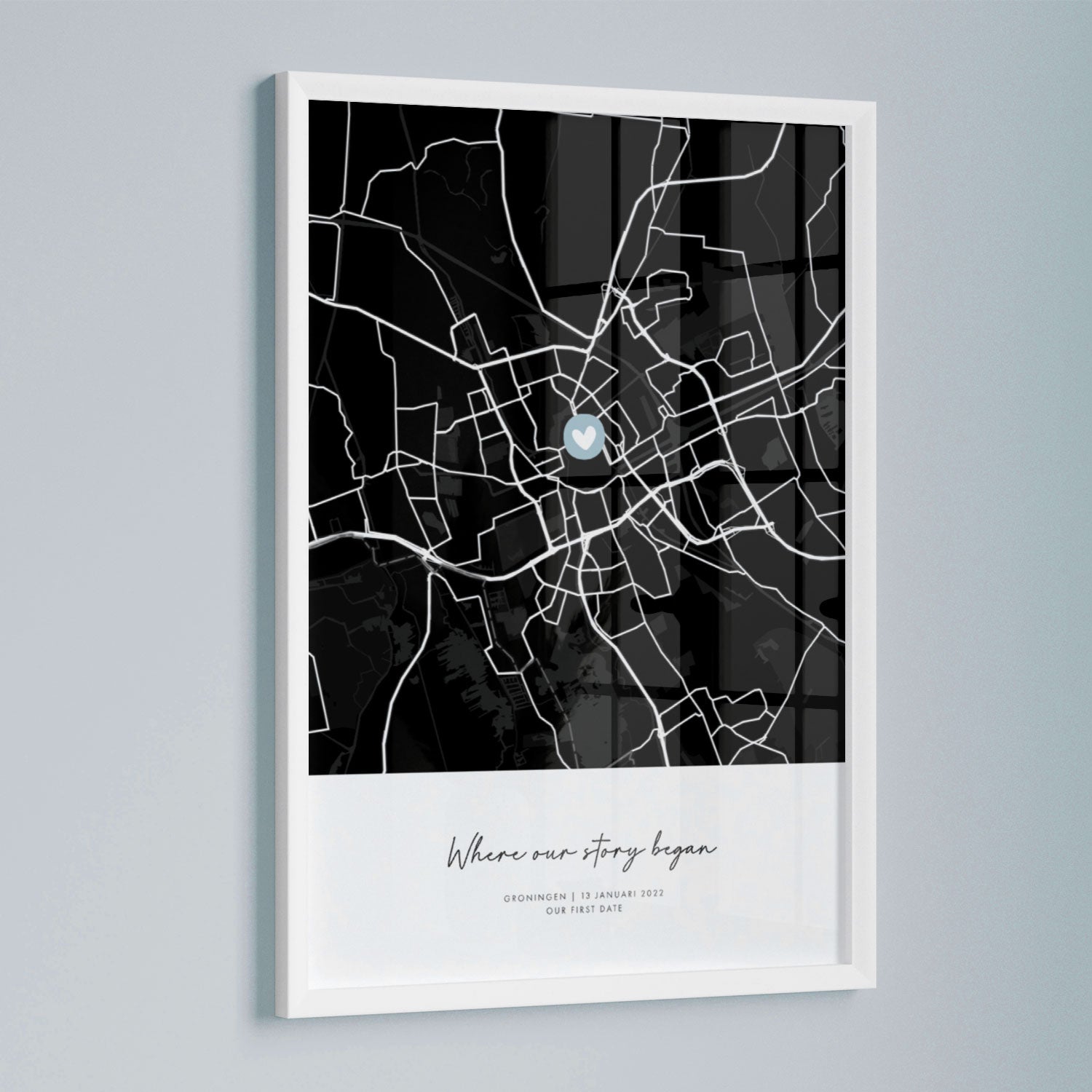 Sommige plekken veranderen je leven voorgoed, simpelweg omdat daar jullie verhaal een begin kreeg. Misschien was het die ene specifieke straathoek, het park waar jullie uren wandelden of de stad waar jullie voor het eerst het gevoel hadden dat het echt klopte. Met deze 'Where it all began' stadskaart poster leg je die exacte coördinaten vast in een minimalistisch en tijdloos design. Het is een eerbetoon aan de plek die de koers van jullie leven heeft veranderd en een dagelijkse herinnering aan dat ene bijzondere moment in de tijd.