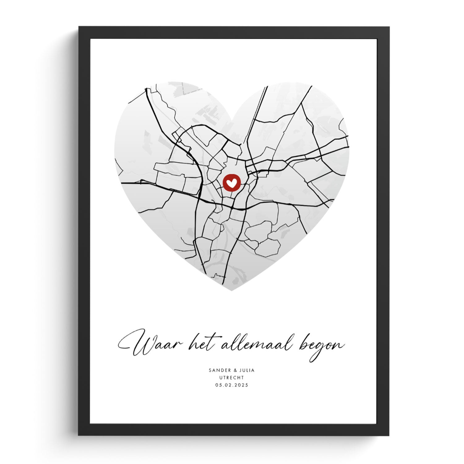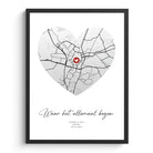 Waar het allemaal begon stadskaart poster hart