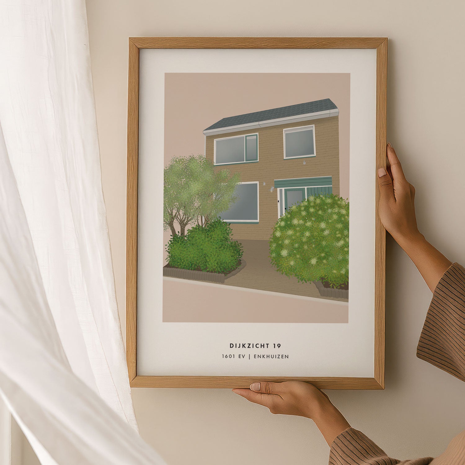 Ein Haus erzählt eine Geschichte. Hier entstehen Erinnerungen und hier fühlt man sich wirklich zu Hause. Mit diesem personalisierten Hausporträt-Poster können Sie dieses Gefühl in einer bleibenden Erinnerung festhalten. Die Illustration Ihres Hauses wird anhand eines Fotos mit viel Liebe zum Detail handgezeichnet. Jedes Design wird individuell angefertigt, um perfekt zu Ihren Bedürfnissen und Ihrer Einrichtung zu passen. So entsteht ein persönliches und unverwechselbares Hausporträt mit echter Bedeutung.