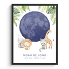 La naissance d'un enfant est un moment précieux à chérir pour toujours. Immortalisez ce début si particulier avec cette affiche de naissance ornée d'un ciel étoilé et d'un décor de jungle enchanteur. Indiquez la date et le lieu de naissance, et une carte du ciel sera automatiquement créée, illustrant la luminosité des étoiles à l'arrivée de votre bébé. Le motif jungle confère à l'affiche une atmosphère chaleureuse et aventureuse, idéale comme souvenir impérissable et comme élément de décoration pour la chambre de votre enfant.